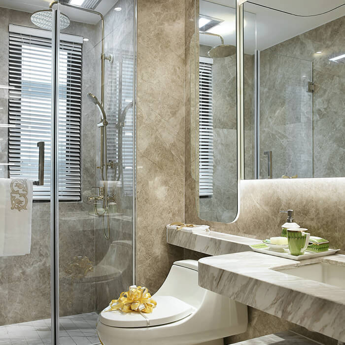 選定衛浴設備,依照收納需求,規劃設計浴室系統櫃,如鏡櫃、收納櫃、瓷盆浴櫃