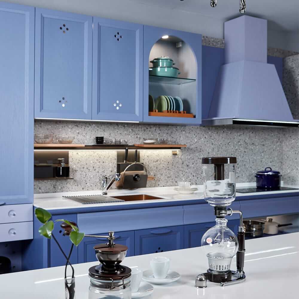 多樣色彩提供選擇,全實木橡木,採噴漆處理,通過安全檢驗,無鉛無毒超低甲醛,耐用,盡情詮釋您對廚房空間設計的想像,冷暖色系配搭性超強,打造個人化廚房空間,配合拿手鄉村風設計,相得益彰。